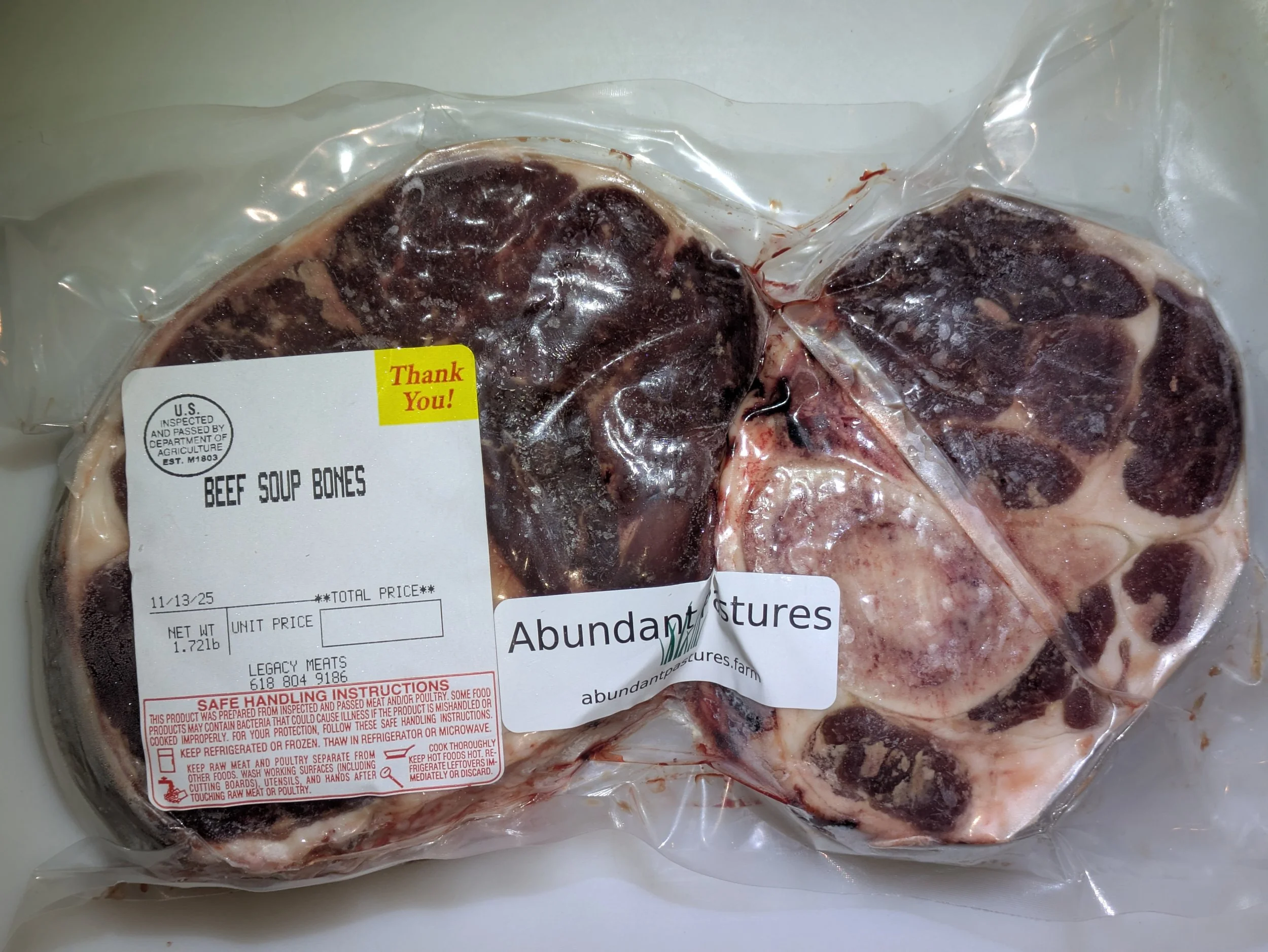Shop › Beef Soup Bones (Non-GMO Fed) Image 1 of 1 Beef Soup Bones (Non-GMO Fed) from $8.40 Size: Select Size 1.5-2 lb 2-2.5 lb 2.5-3 lb Quantity: Add To Cart Added!